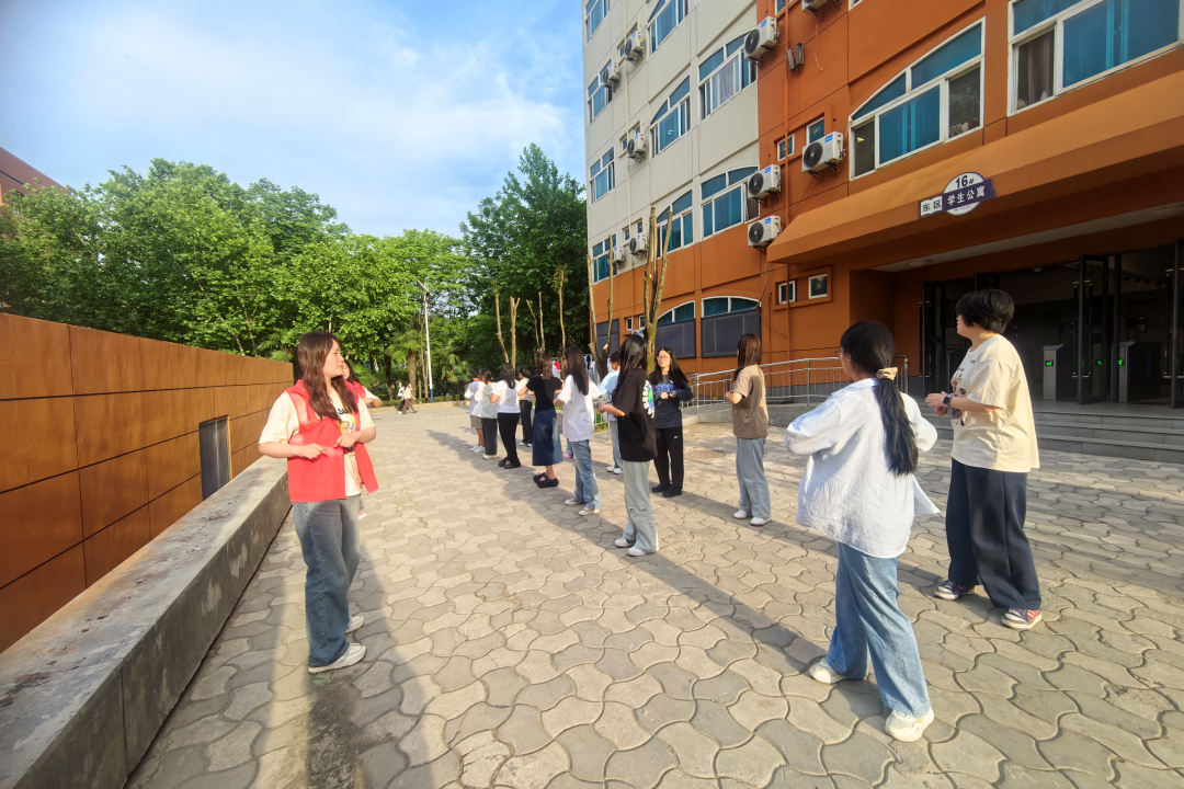 随后,学生党员同志带领支部成员们做起了热身操。从头部运动到扩胸运动,从腰部扭转到膝关节活动,一边做一边耐心地为同学们讲解动作要领。在做操过程中,大家认真跟随着领操同志的节奏,动作整齐划一,通过这一套动作使得身体获得了极大的放松。
