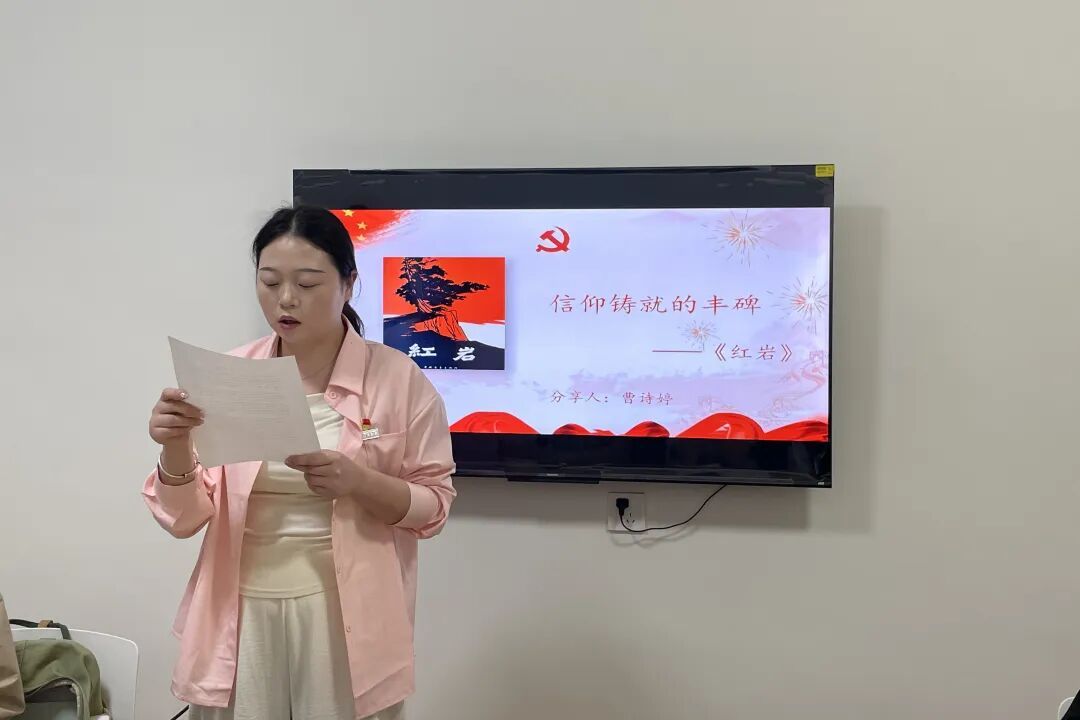 曹诗婷同志以“信仰铸就的丰碑”为主题,深情讲述了《红岩》中江姐、许云峰等革命先烈在狱中坚守信仰、宁死不屈的事迹,她表示:“红岩精神是永不褪色的精神丰碑,作为新时代青年,我们要传承先烈遗志,在逆境中坚守初心,在奋斗中彰显担当。”