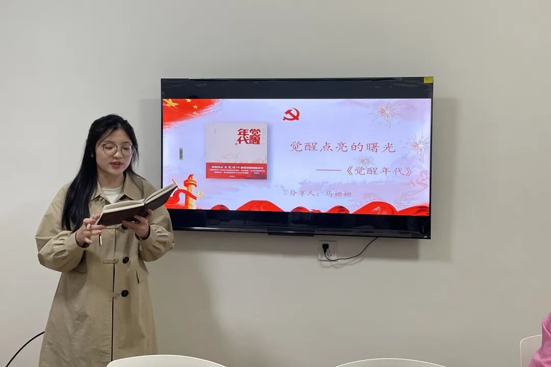马姗姗同志聚焦“觉醒点亮的曙光”的主题核心,分享了《觉醒年代》一书。通过再读李大钊、陈独秀等先辈探索救国道路的历程,阐释思想觉醒对青年成长的重要意义,她强调:“觉醒是行动的先导,我们要在新时代保持思想上的清醒,以理论武装头脑,做走在时代前列的奋进者。”
