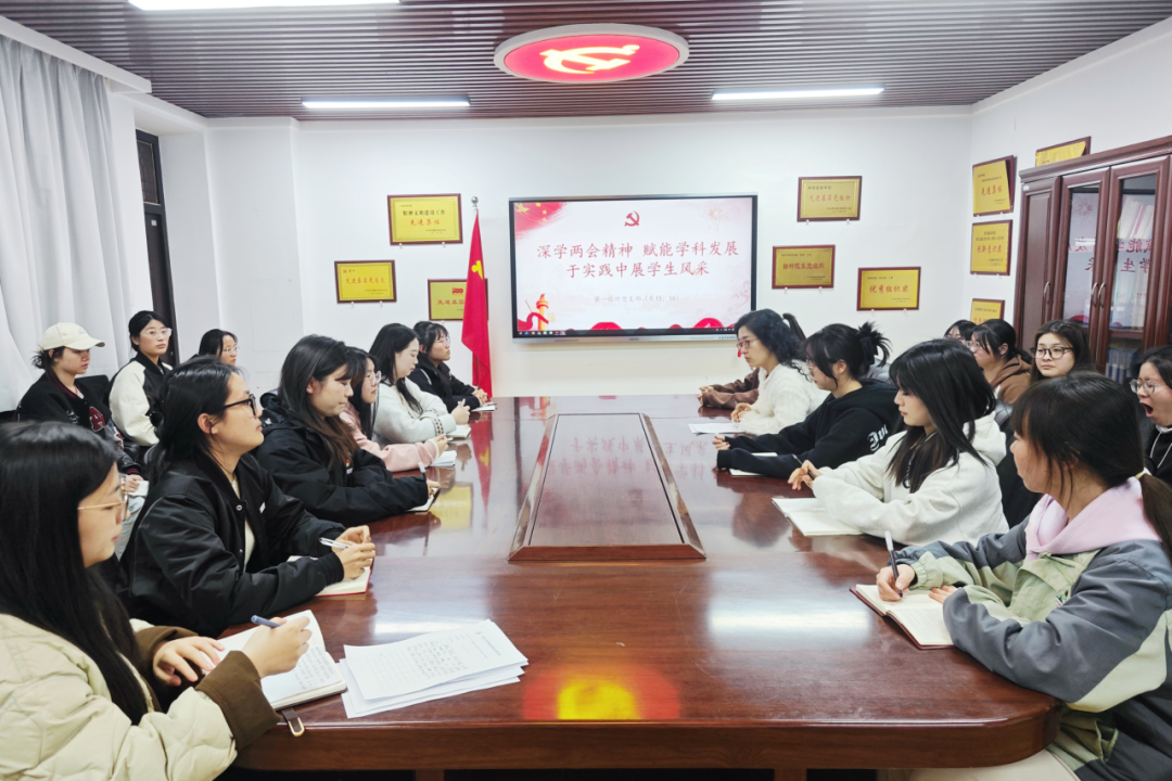 会议伊始,沈平利同志传达了中共中央两会精神的核心要义,指明了在“一站式”学生社区深入贯彻两会精神的重要意义。她表示,要借助“一站式”学生社区的资源优势,打破传统学习模式在时间与空间上的限制,搭建起线上线下融合的学习平台。依托这一平台,组织学生党员系统、全面地学习两会的重要内容,加强党员对两会精神理论知识的掌握,通过线上测试等形式检验党员学习成果,营造“以少数带动多数、全员共同进步”的良好学习氛围,促进两会精神在广大师生中广泛传播,凝聚思想共识,稳步推进各项工作的开展,在学思践悟中推动学科建设再上新台阶。