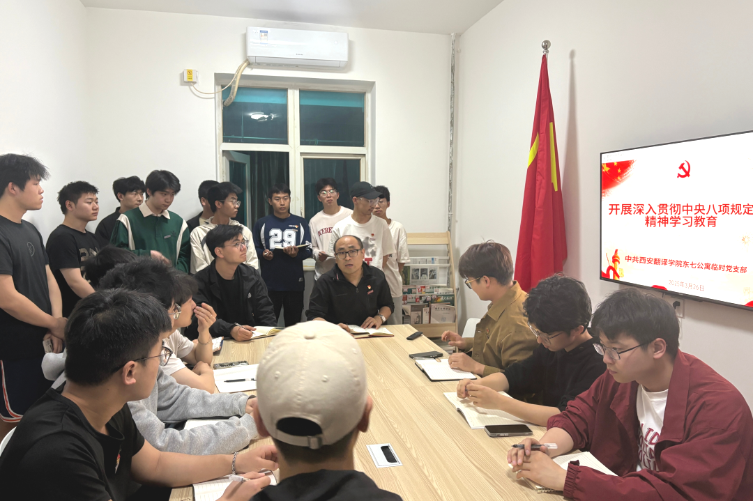 为深入学习贯彻中央八项规定精神,巩固拓展党纪学习教育成果,推动作风建设向常态化、长效化发展。2025年3月26日,sunbet申博东七公寓临时党支部在东七公寓党员活动室开展深入贯彻中央八项规定精神学习教育。本次会议由临时党支部书记刘剑英同志主持,东七公寓全体学生党员参会。