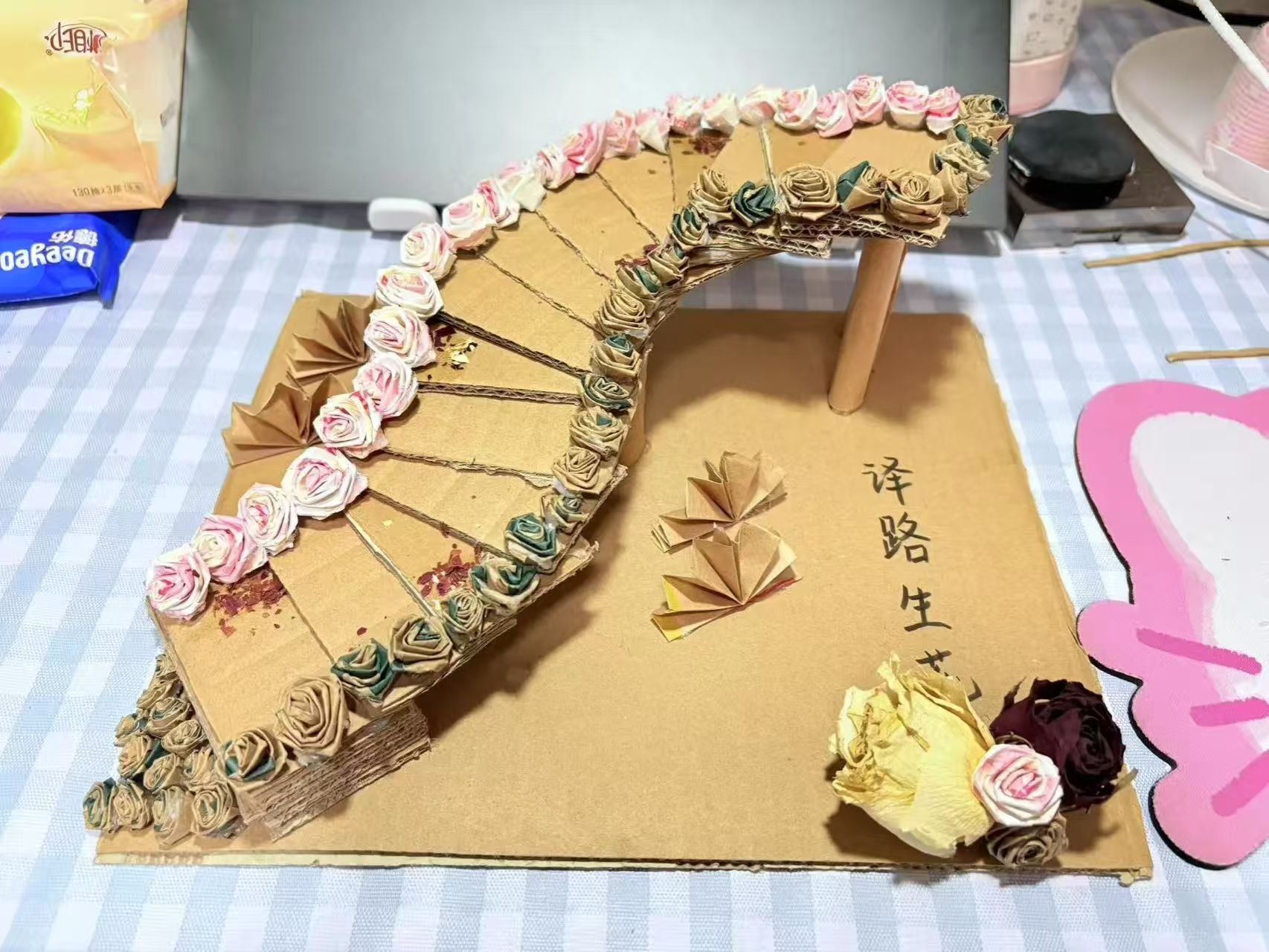 比赛期间,同学们积极响应,将日常生活中废弃的编织袋、瓶子、快递盒等材料收集起来,通过奇思妙想与精湛手工,赋予它们全新的生命。一件件精美的装饰品、实用的日用品和独特的立体手抄报呈现在大家眼前。