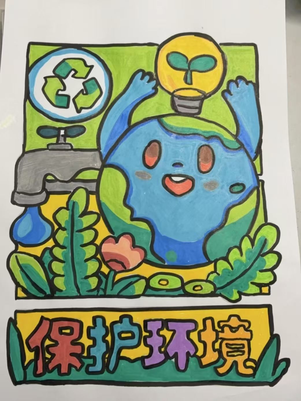 有的同学把废弃塑料瓶切割、重组,变成了精致的小花瓶;有的用快递盒打造出功能齐全的桌面收纳架。这些作品不仅展现了高超的手工技艺,更传递出节约资源、循环利用的环保理念。大家还纷纷写下与“提倡绿色生活方式”相关的环保建议,从减少一次性用品使用到做好垃圾分类,每一条建议都饱含着对绿色家园的期盼。