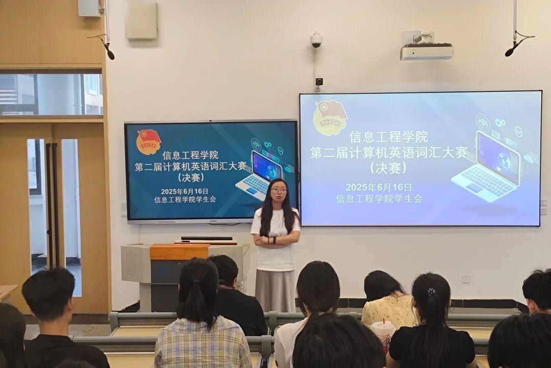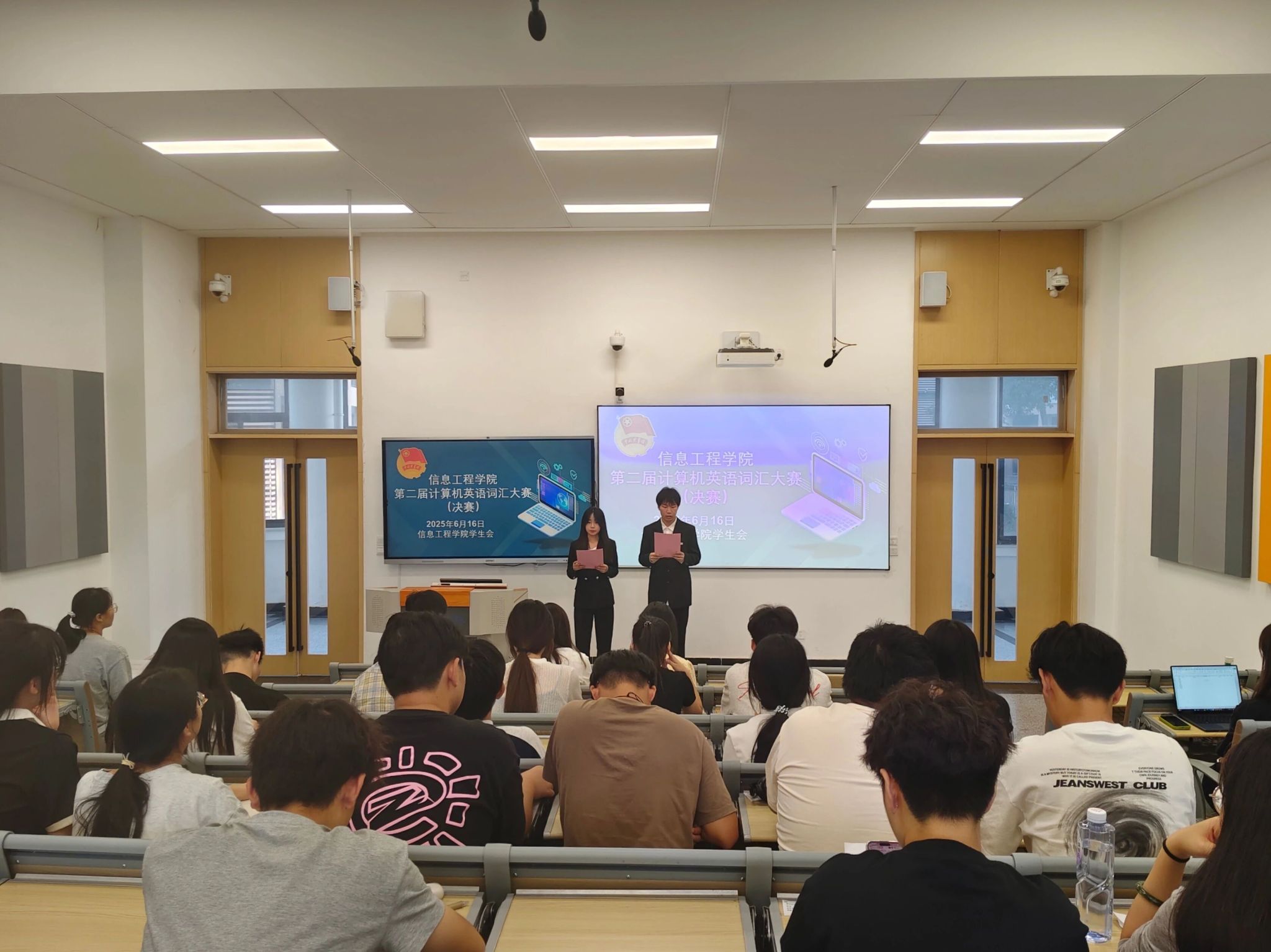 为提升大学生在计算机领域的英语水平,促进跨学科的学术交流,6月16日,sunbet申博于723T举办了“词海撷英 语梦争辉”计算机英语词汇大赛总决赛。团总支副书记陈雨婷、23级辅导员李卫刚和关顺红老师担任评委,大赛由梁佳浩、孙怡琳主持。