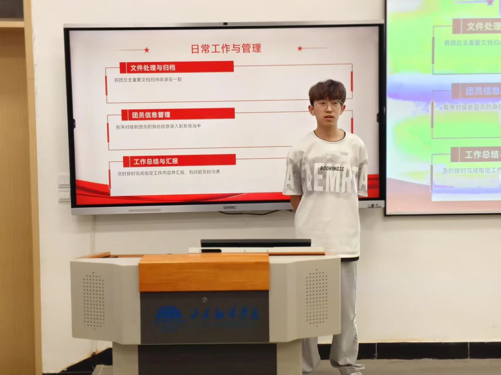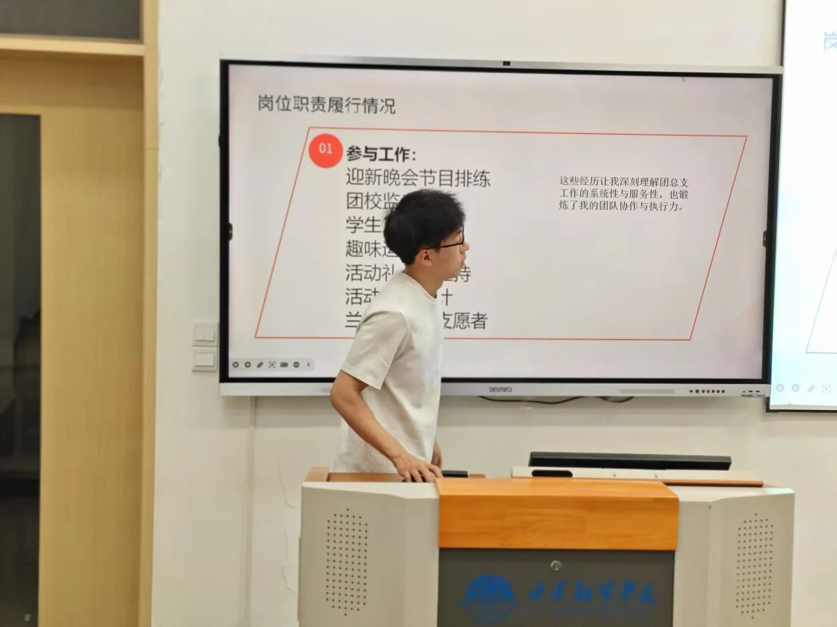在答辩过程中,部分同学深情回顾了在团总支历练的点点滴滴,用生动的案例讲述了自己如何突破困境、与伙伴们携手成长的难忘经历;部分同学则立足部门职能,系统分析了岗位要求,凭借独到的见解提出了富有创意的优化方案;更有同学动情地表达了对团总支的热爱之情,表明了继续服务同学、助力学院建设的强烈意愿。