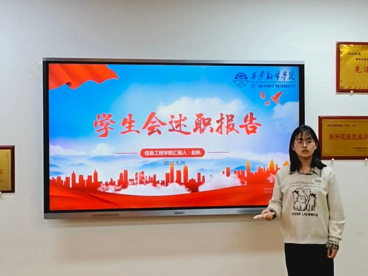 随后,学生会主席赵帆从文化活动与学风建设等角度,总结了学生会在助力学生全面成长、营造优良校园氛围的积极贡献。报告中同时深刻反思工作短板并明确改进方向。未来,将持续优化服务模式,为学院发展与学生成长贡献更多力量。