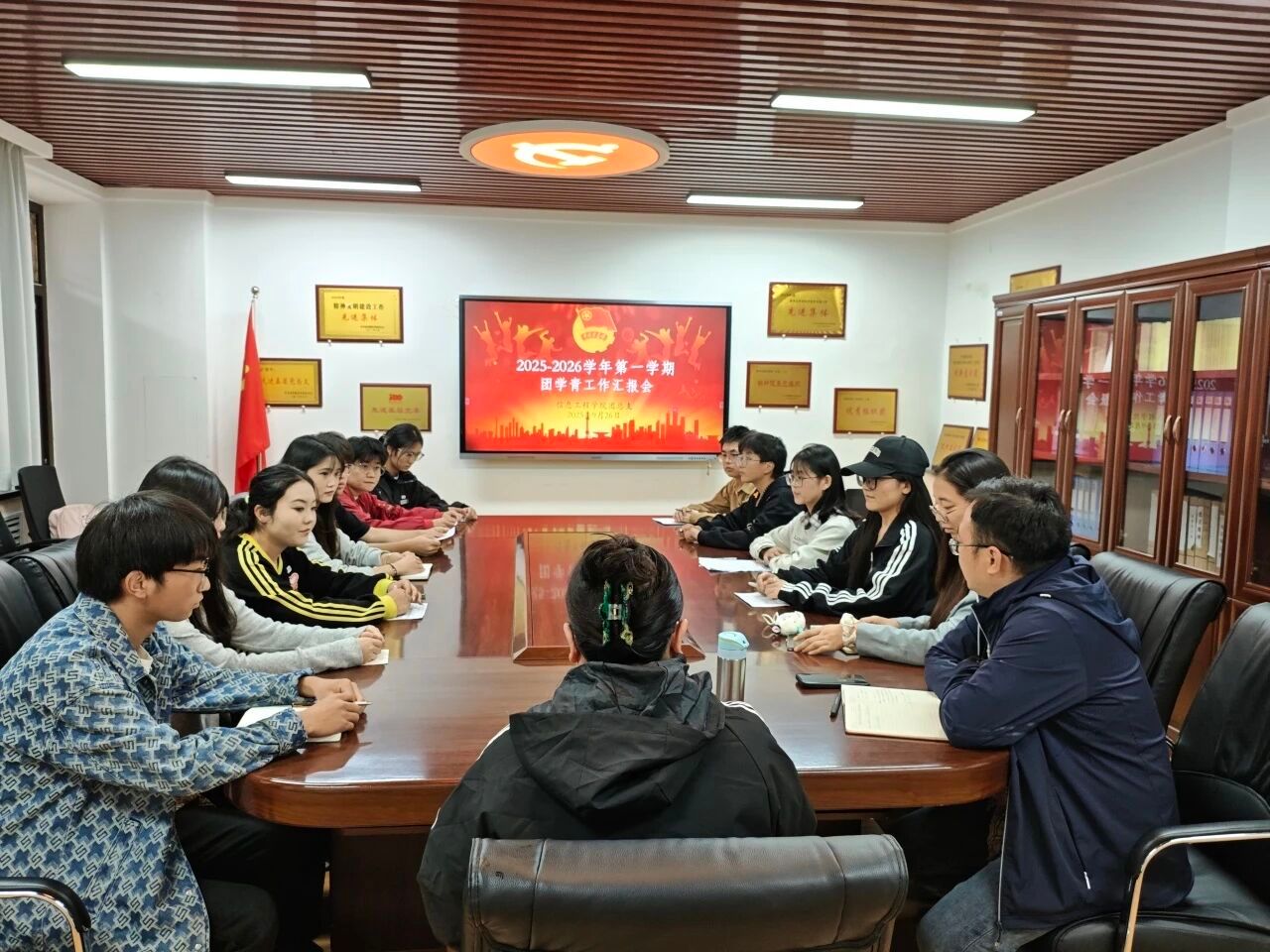 会议伊始,由组织部副部长吴佳欣依次介绍团学青三家组织成员,重点说明所负责组织及核心工作领域,为后续沟通协作奠定基础。随后,团总支、学生会、青年志愿者协会的主要负责人依次就团学青工作向王珍进行汇报。