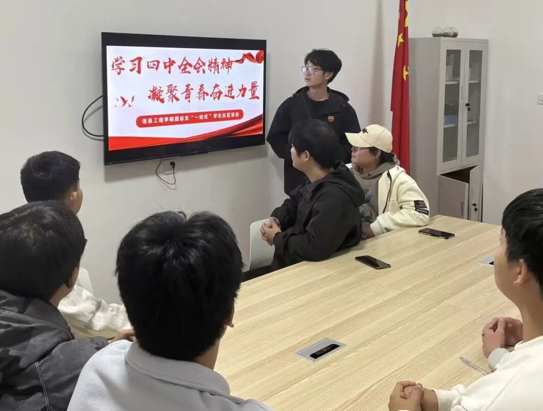 为了深入学习贯彻党的四中全会精神,引导广大团员青年深刻领会其核心要义与实践要求,sunbet申博团总支于11月13日在东七公寓“一站式”学生事务中心举办“学习四中全会精神,凝聚青春奋进力量”主题学习活动。